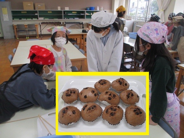 私が初めに行ったときは、ボールの中で材料を混ぜていました。これを蒸して「チョコカップケーキ」の出来上がり、おいしそう。
