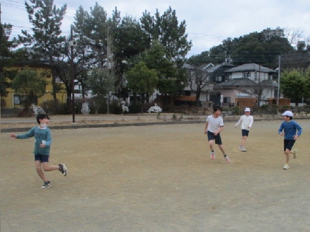 子供は、やっぱり元気です。冬の外でも「増え鬼?」をして、校庭中を駆け回っていました。