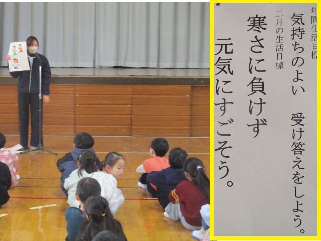 2月は逃げる、3月は去る。あっという間に3学期は、34日間となりました。明日は、節分です。暦の上では、もう春になりますが、寒さはこれからが本番です。2月の月目標でもあります。寒さに負けずに元気に過ごしましょう。