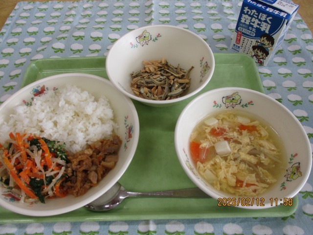 切干ピビンパ・中華風卵スープ・手作り魚ナッツ・牛乳