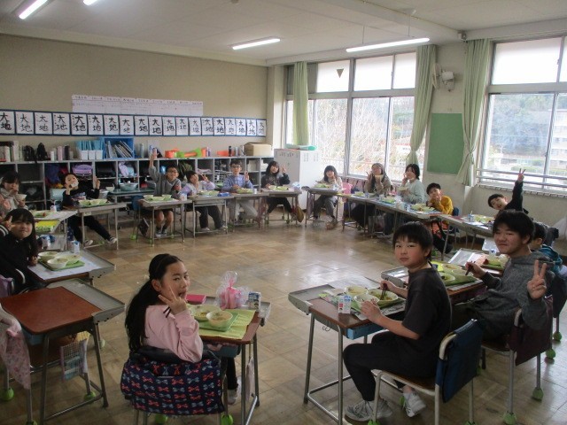 第二部は、なかよし班に分かれて、一緒に給食を食べました。