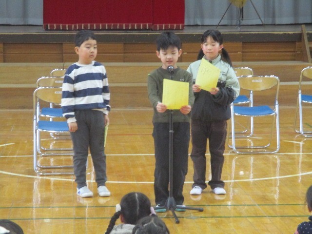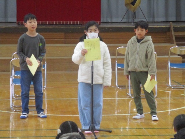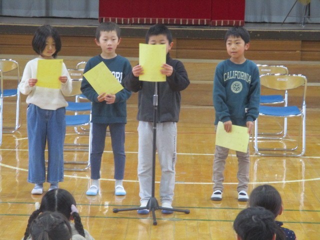 今年度最後の「ことば朝会」でした。1・2・3年生の代表の児童です。