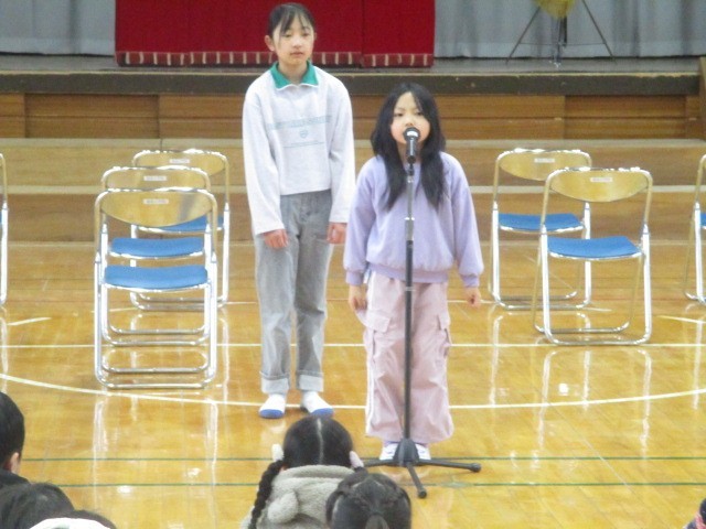 4・5・6年生の代表の児童です。6年生は、卒業をテーマとした作品が多かったです。