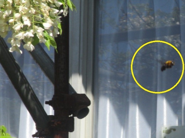4月16日 校庭の花とクマバチ(クマンバチ)