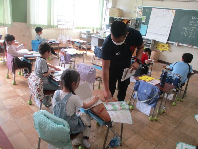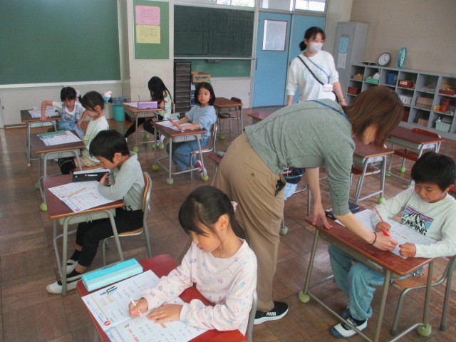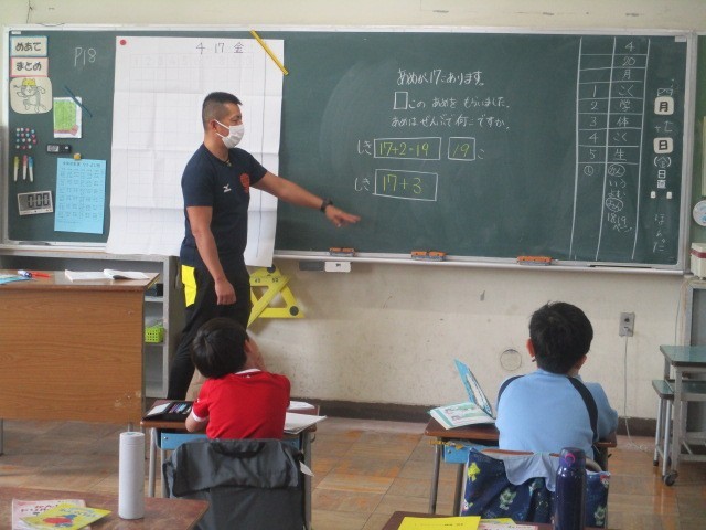 2年生の算数の授業です。保護者の皆様には、大変ご迷惑をおかけしましたが、今年度から講師の先生が見つかり、1・2年生もさらに少人数で学習することができるようになりました。