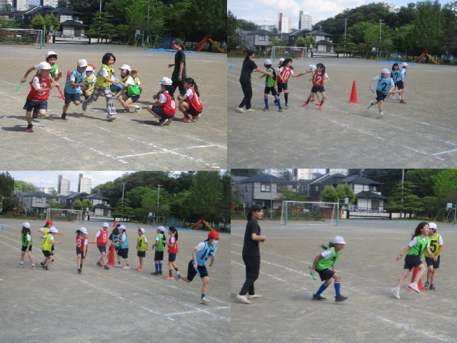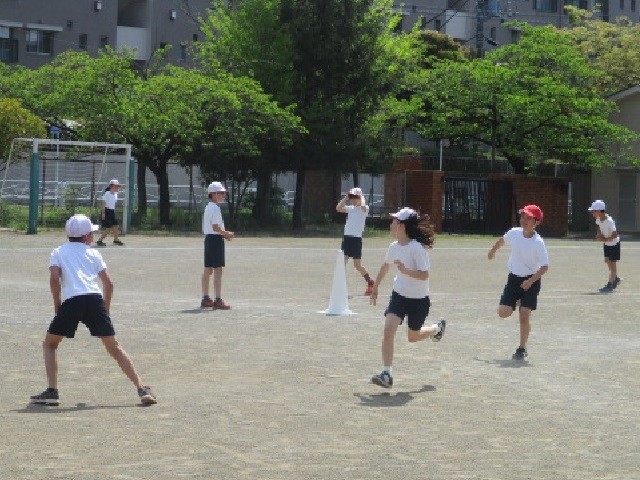 今日は、5月中旬並みの陽気でした。鬼ごっこでウォーミングアップをしてから、リレーのの学習でした。もう、運動会シーズンですね。