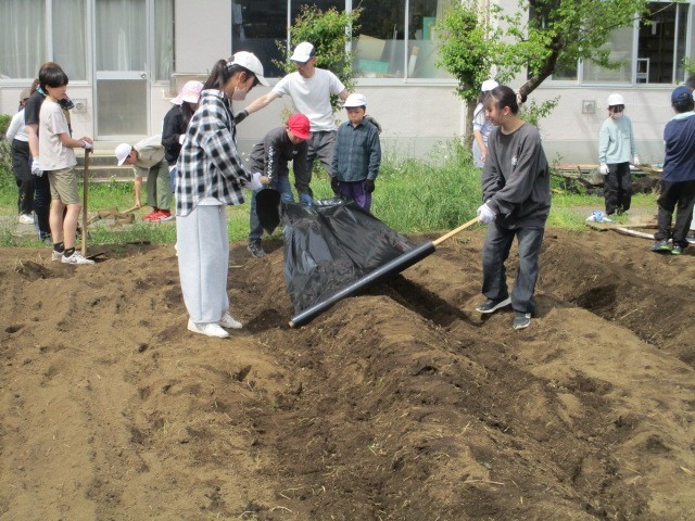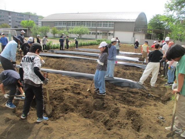 4月21日 畝(うね)づくり・マルチシート張り 5・6年生 Part2