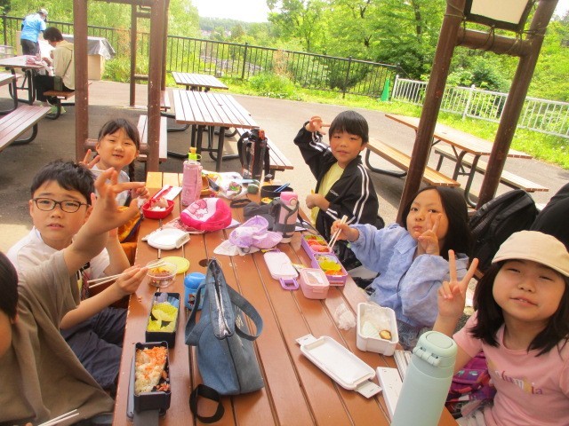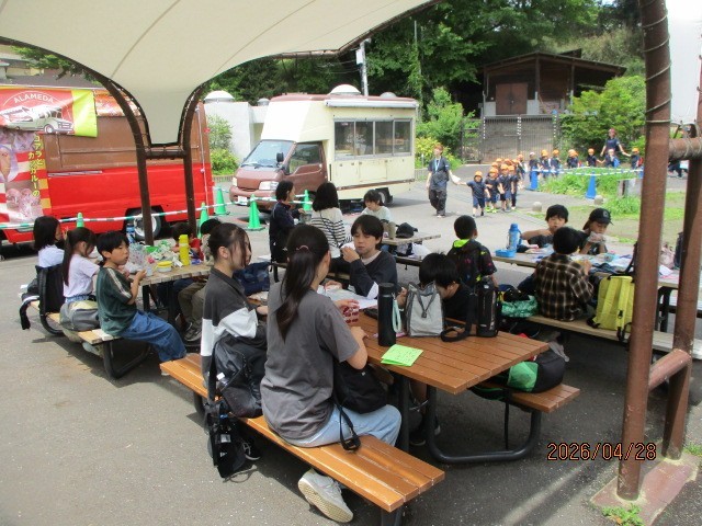 昼食するタイミングも場所も子供たちで決めて動いています。臨機応変に今日、場所を変えた班もありました。