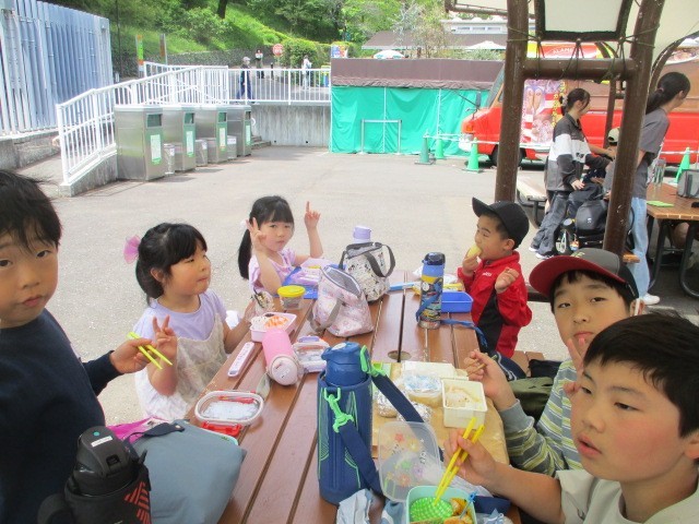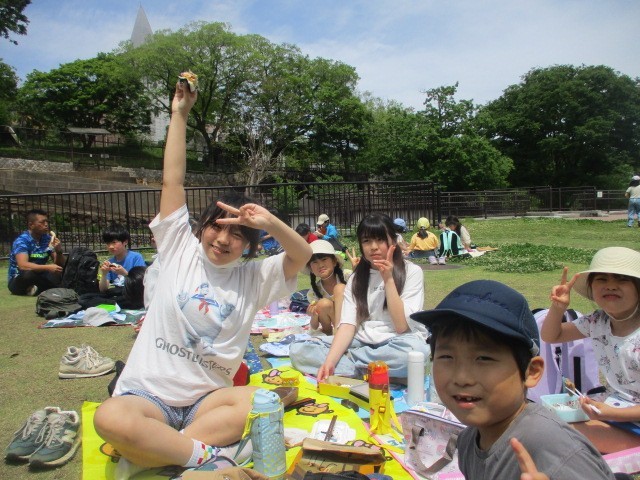 たくさん歩いたので、お弁当もおいしいです。お家の人にしっかり感謝してくださいね。「ありがとう。」