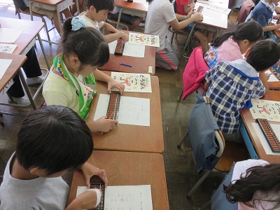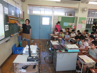 ゲストティチャーをお迎えし、3年生初めてのそろばんの授業を行いました。そろばんの起源クイズに始まり、そろばんの珠のはらい方・簡単なたし算の仕方や答え合わせの仕方など、そろばんの基礎を学びました。慣れない手つきでそろばんをはらう姿がほほえましかったです。「そろばん、気に入った」というつぶやきも聞かれ、楽しい学習となりました。
