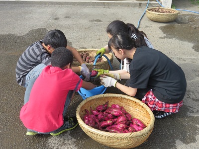 掘ったサツマイモは、6年生が丁寧に洗ってくれました。