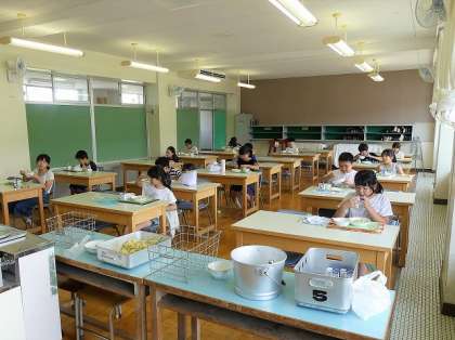 久しぶりの給食ですが、感染症予防対策をしっかりしなくてはなりません。5・6年生は1クラスの人数が多いので、2教室に分かれて食べました。配膳の時間も短くなり、ゆっくり味わって食べられました。【食育担当】
