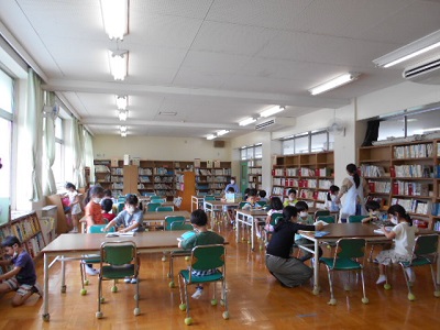 1年生は、初めての読書週間です。学校司書の先生の読み聞かせを聞いたり、自分のお気に入りの本を探して読書したりすることができました。