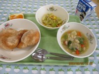 給食のししじゅうしは豚の千切り肉、刻み昆布、油揚げ、しょうが、にんじんを炒め、しっかり味をつけてから、炊き上がったごはんと混ぜ合わせて作っています。