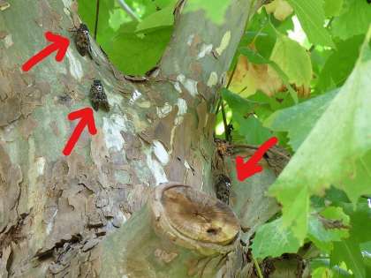 ※写真は、鹿島小のセミです。プラタナスの木にたくさんとまってないています。
