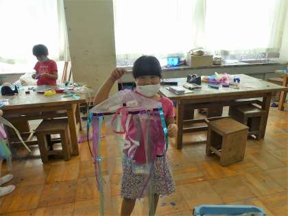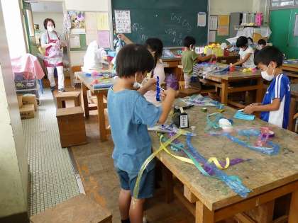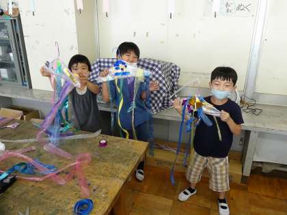 風にゆれる飾りをつくりました。材料を選び、形や色を考えて、個性あふれる飾りができました。【ホームページ担当】