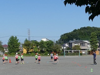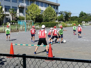 ミニサッカーのゲームです。少人数にして、休憩をとりながら、取り組みました。