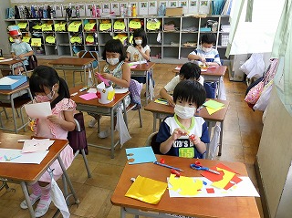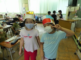 この時間は、練習として、折り紙や色紙で王冠を作りました。きれいな王冠ができました。【ホームページ担当】