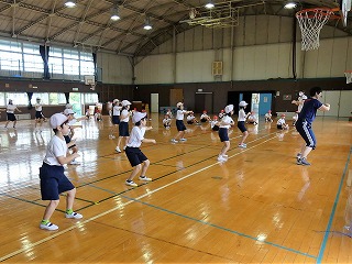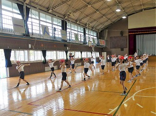 今年の運動会の表現種目は、感染症対策で複雑な隊形移動は行いませんが、その分一人一人の動きを丁寧に練習しています。左右逆の動きも、すぐに覚えていました。