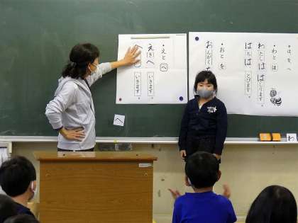 1年生は、意欲的に発表しています。「どうですか」という言い方もしっかりできています。