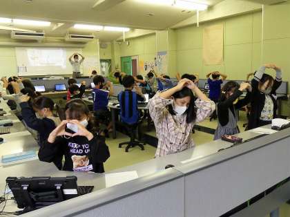 4年生もオンラインミーティング練習をしました。アルファベットのアドレス入力に苦戦しましたが、お家でやるときは、すでに登録済みなので大丈夫です。パソコンのカメラに向かって、オッケーの〇を出しています。