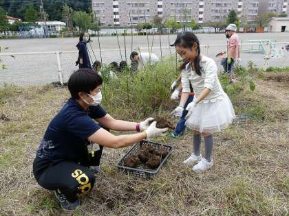 3年生は、こんにゃく芋を収穫しました。芋を傷つけないようにそっと掘りました。おいしいこんにゃくが出来るのが、今から楽しみですね。