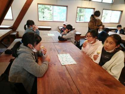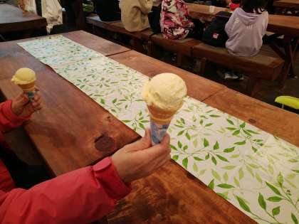 カレーライスのあとは、ソフトクリーム。おいしいと女子3人の感想です。