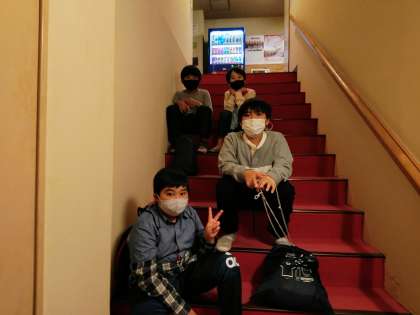 順番でお風呂に入っています。階段に座っている子供たちは順番待ちです。