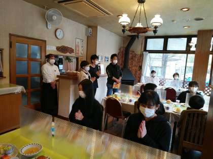 朝ご飯を食べています。みんな元気です。