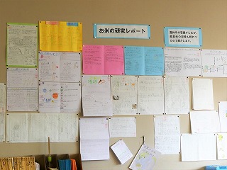 教室には、お米の研究レポートも紹介されています。