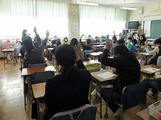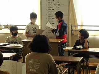 お題は、「家でお手伝いしたときは、仕事に見合ったお小遣いをくれるべきである」「学校からの手紙は、すべて電子メールにするべきである」「小学生は、夜9時以降は、テレビやスマホの動画は見ないほうがよい」「毎日の食事には、インスタント食品を積極的に使ったほうがよい」です。否定側、肯定側に分かれ、説得力のある意見を出し合いました。保護者の方々にも判定に加わっていただきました。
