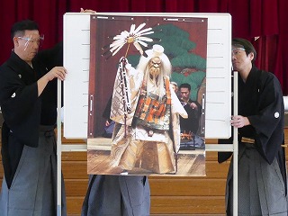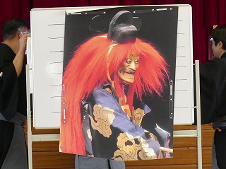 「能」についての話や登場人物(人ではなさそうですが)の説明は、クイズ形式でした。なかなか難しいのですが、右の写真は見事に正解しました。分かりますか。