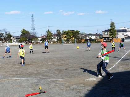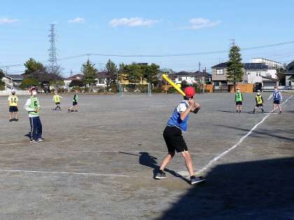 屋外運動クラブは野球です。男子の多いクラブですが、女子も3塁打を打つなど活躍しています。