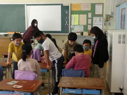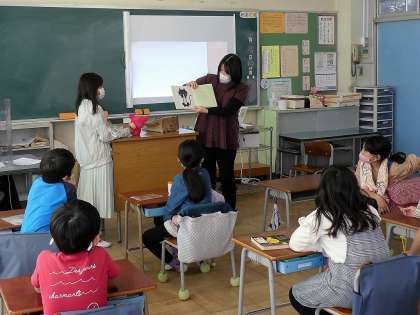 小さいころの足型や絵本な、思い出の品を紹介しました。子供たちは、友達の発表をよく聞いていました。