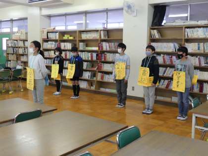今日の集会は、児童会役員の新旧の交代式でした。今回は、チームズでライブ配信しました。はじめに、今年の児童会役員から、心に残った取り組みや頑張ったことについての挨拶がありました。次に、来年度の新しい児童会役員から、一人一人の決意が伝えられました。新旧共に立派な堂々とした挨拶で、教室にいる子供たちもしっかり聞くと同時に、たくさんの拍手を送っていました。旧役員さん、活躍、本当にご苦労様でした。そして、新役員さん、鹿島小のリーダーとして、全校が期待し、応援しています。