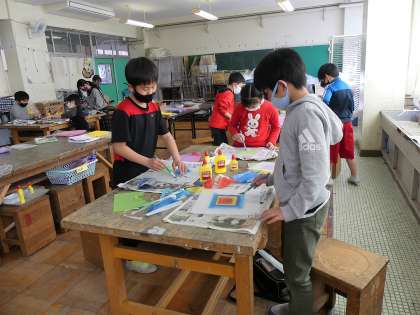 いろいろな材料に光を通した感じを生かして、楽しい世界を表します。