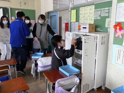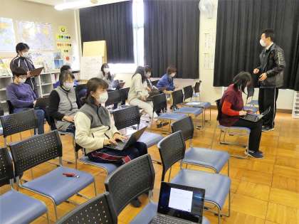 Chromebook(児童機)が鹿島小に納入されました。まずは、先生方が使ってみようということで、研修会を行いました。はじめは、恐る恐る操作していましたが、少しずつ慣れて、背景の変換などできるようになりました。音声入力では、英語で入力する先生もいるほどです。