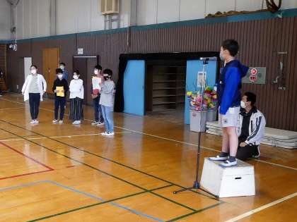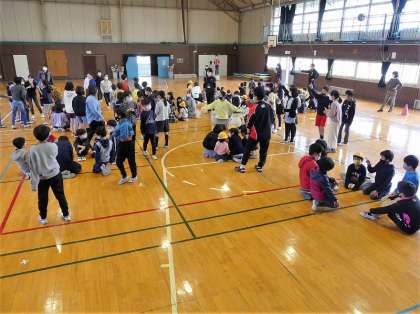 迎える会では、2年生から6年生までの鹿島小学校の先輩たちが、優しく迎え入れてくれたおかげで1年生のみなさんも、堂々と鹿島小学校の仲間入りをしました。「学校探検ゲーム」(猛獣狩りの学校版)では、体育館をいっぱいに使って、仲良く交流しました。