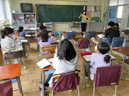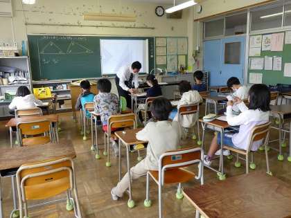 4年生の算数では、「角とその大きさ」の学習が進んでいます。三角定規の角を使って、75度の角度をつくります。みんな自分の三角定規を使って、あれこれ考えました。