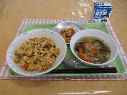 今日はお天気も良く、日中は少し暑いくらいだったので、ピリ辛のキムチチャーハンは食が進んだようです。