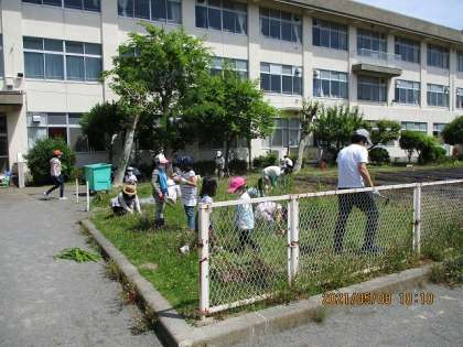 5月8日(土)に、運動会班のご家族40名ほどで、草刈りを行いました。土曜日は、晴れて大変暑い中、熱心に草を取っていただきました。ありがとうございました。