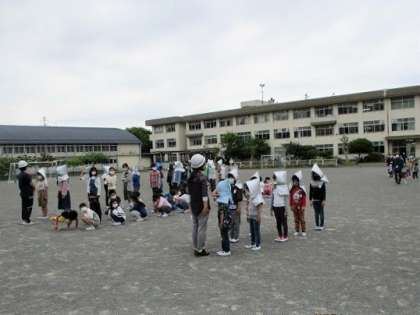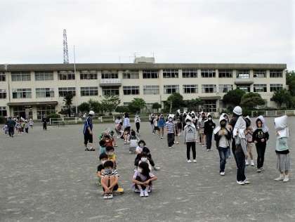 今年度2回目の避難訓練は、地震の想定で行いました。放送を聞いた後、校庭南側鉄棒前にすばやく避難できました。