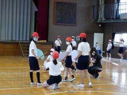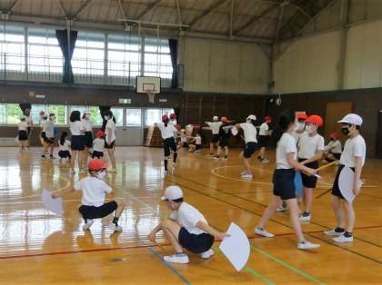 6年生と5年生が組んでグループになり、練習が行われていました。