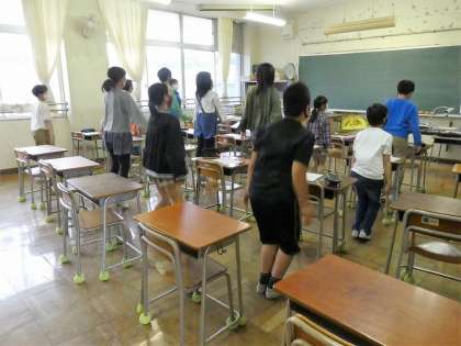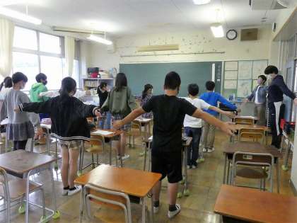 運動会の体操を練習しているのは、保健体育委員会です。みんなのお手本になるようがんばっていました。