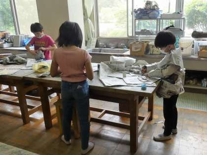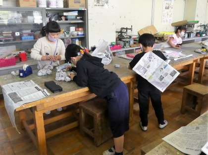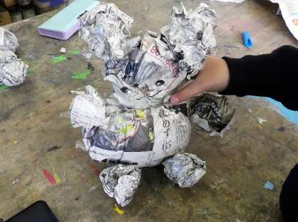 子供たちにとって身近な新聞紙を材料に、造形遊びを行いました。新聞紙の感覚を楽しみ、くしゃくしゃにしたり、つないだり、積んだりするなど、思いついたことから試していました。