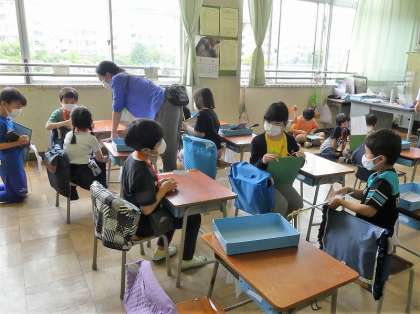 5時間目に、2年生が1年生を案内して学校探検をしました。最初に教室で自己紹介をしてスタートしました。