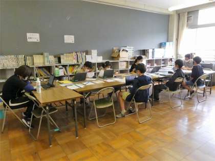 図書委員会は、本の紹介の準備を始めています。児童会委員会は、クロームブックを使って話し合いを進めていました。