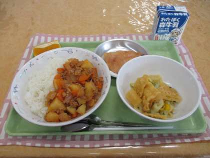 日本で有名なブラジル料理と言えば、鉄の串に肉を刺して焼いたシュラスコです。給食では串に刺して焼くことができないので、鶏もも肉に塩・こしょうを振りかけてオーブンで焼きました。