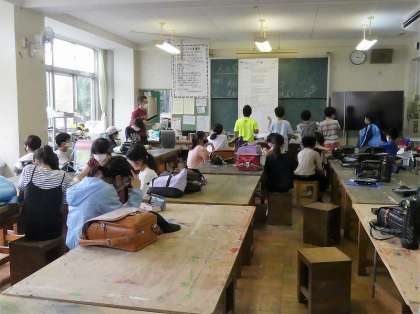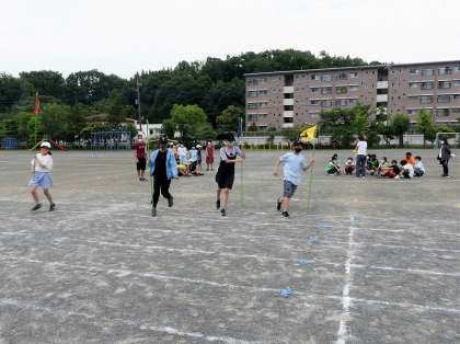 教室で仕事の分担を確認した後、校庭で徒競走の係仕事のリハーサルをしました。等賞旗を持って、誘導するのも準備係の仕事です。