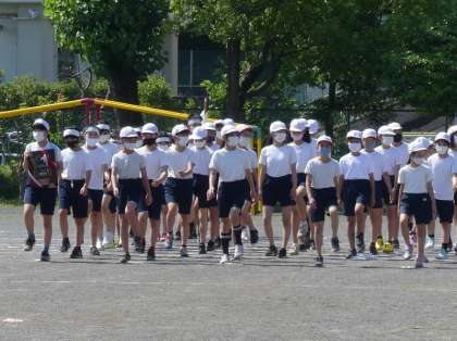 入場行進も上手になってきました。高学年は、まっすぐ腕を振って歩いてきます。